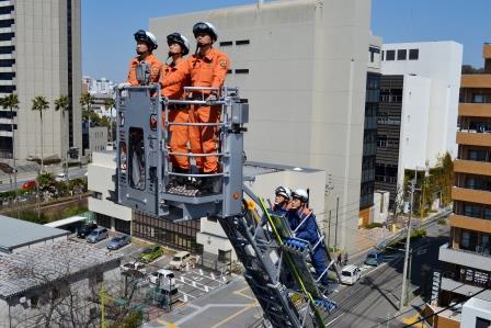 はしご車:54.7メートル日本一「ビクともしない」徳島毎日新聞。