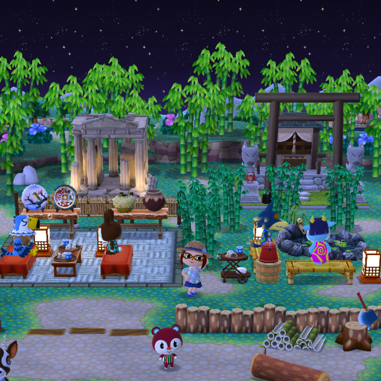 ポケ森 オリエンタル家具でつねきち神社風キャンプ場レイアウト キャンプ場レイアウトポケ森攻略ガイド。