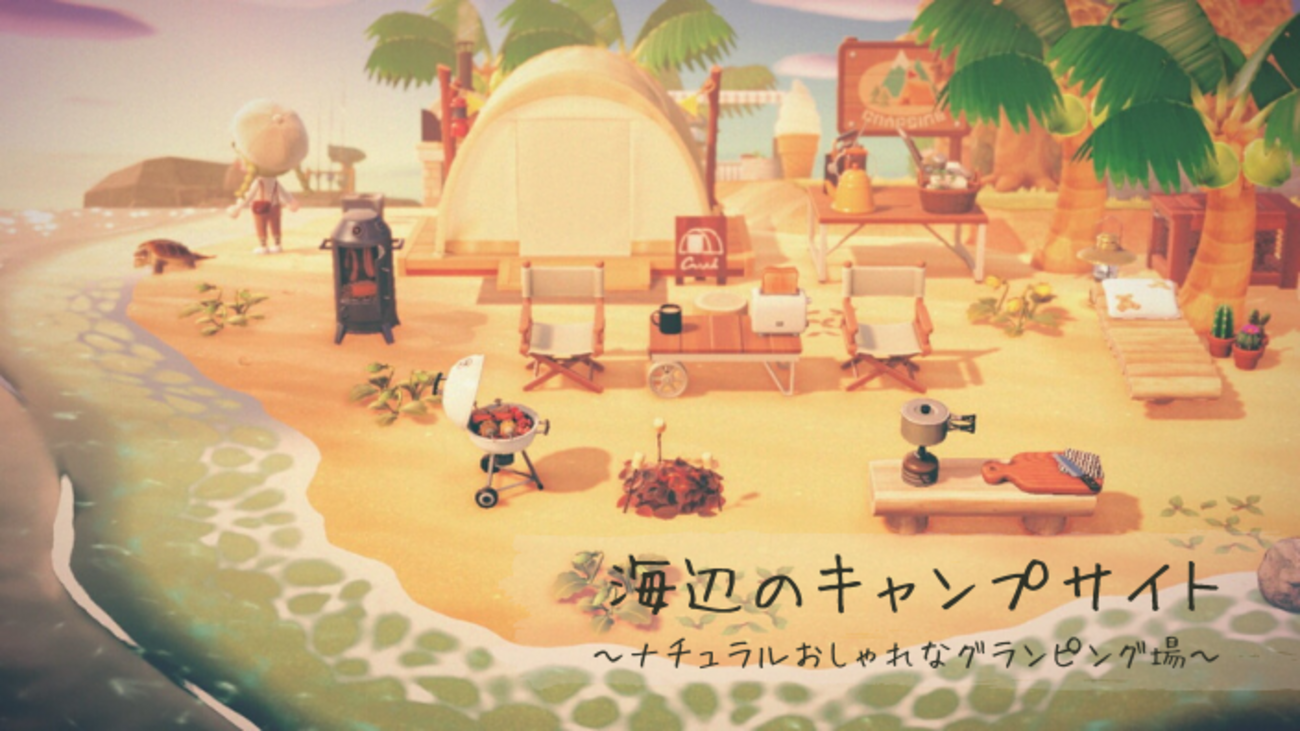 あつ森 キャンプサイト周りのレイアウト~森と海に囲まれたキャンプ場~ - マイミーボックス myme box。