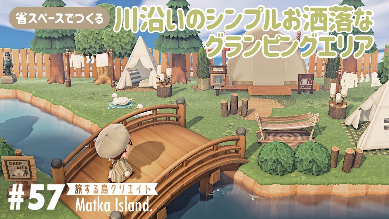 あつ森 川沿いにシンプルでお洒落なグランピングエリアをつくる省スペースキャンプサイト周り 旅する島クリエイト。