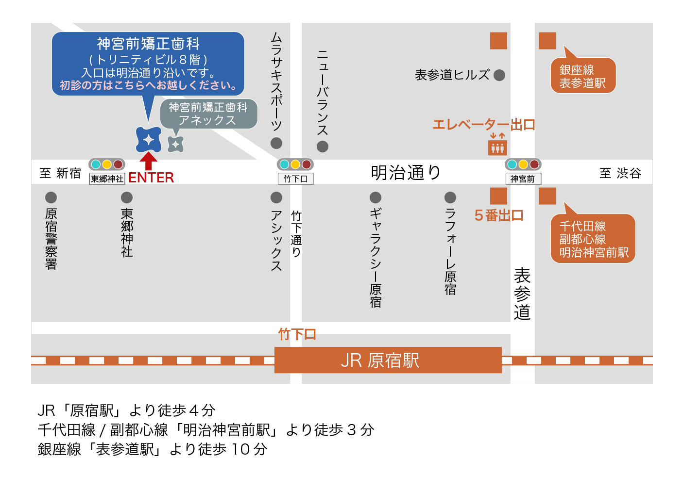 アクセスマップ渋谷・表参道・原宿の舌側矯正専門 神宮前矯正歯科。