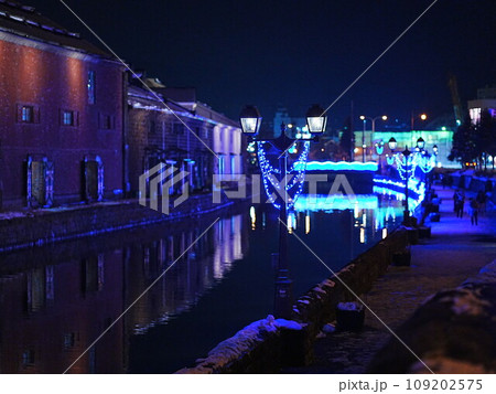 北海道 小樽市 小樽 飲み屋街 レンガ横丁 イルミネーション 小樽運河 青の運河の写真素材97756821- PIXTA。