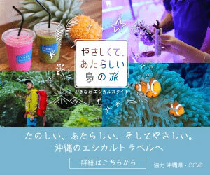 やさしくて、あたらしい島の旅 たのしい、あたらしい、そしてやさしい。沖縄のエシカルトラベルへのバナーBannnner.com。