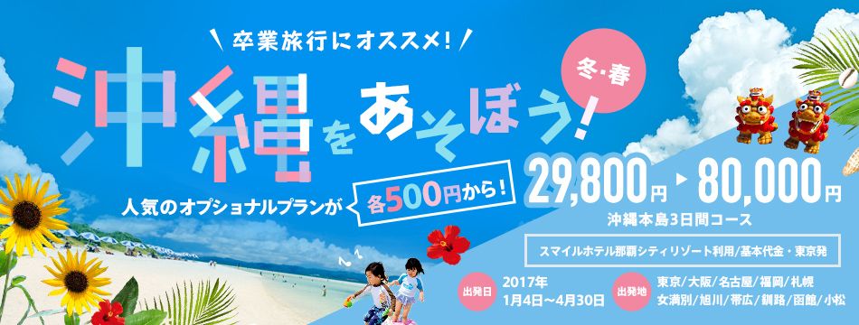 日本で一番早い春が来る 沖縄へ行こう 今こそお得な旅にしバナーデザインまとめサイト - バナーな bana-na。