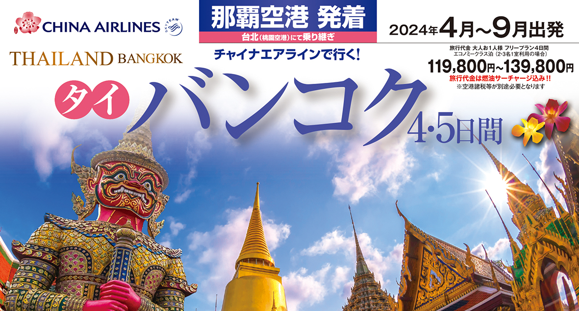 4月以降のプラン出ています チャイナエアラインで行くバンコク4・5日間沖縄旅行格安航空券中央ツーリスト。