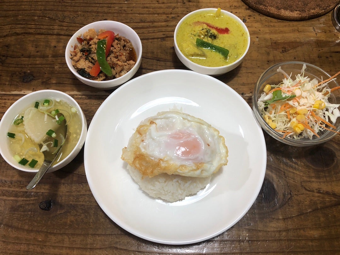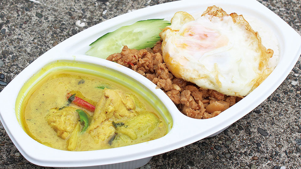 水道橋 バンコックコスモ食堂 22 177 速攻提供のランチテイクアウトで辛口変更のグリーンカレー&ガパオセット : カレー探求、たまにAI創薬。