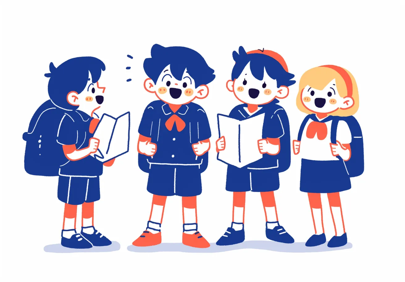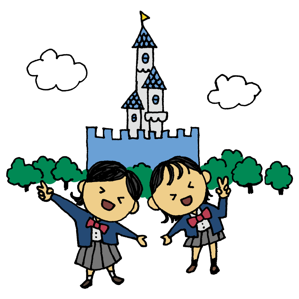 中学生の卒業旅行と仲間たちイラスト・フリー素材なら「シンテリ」。