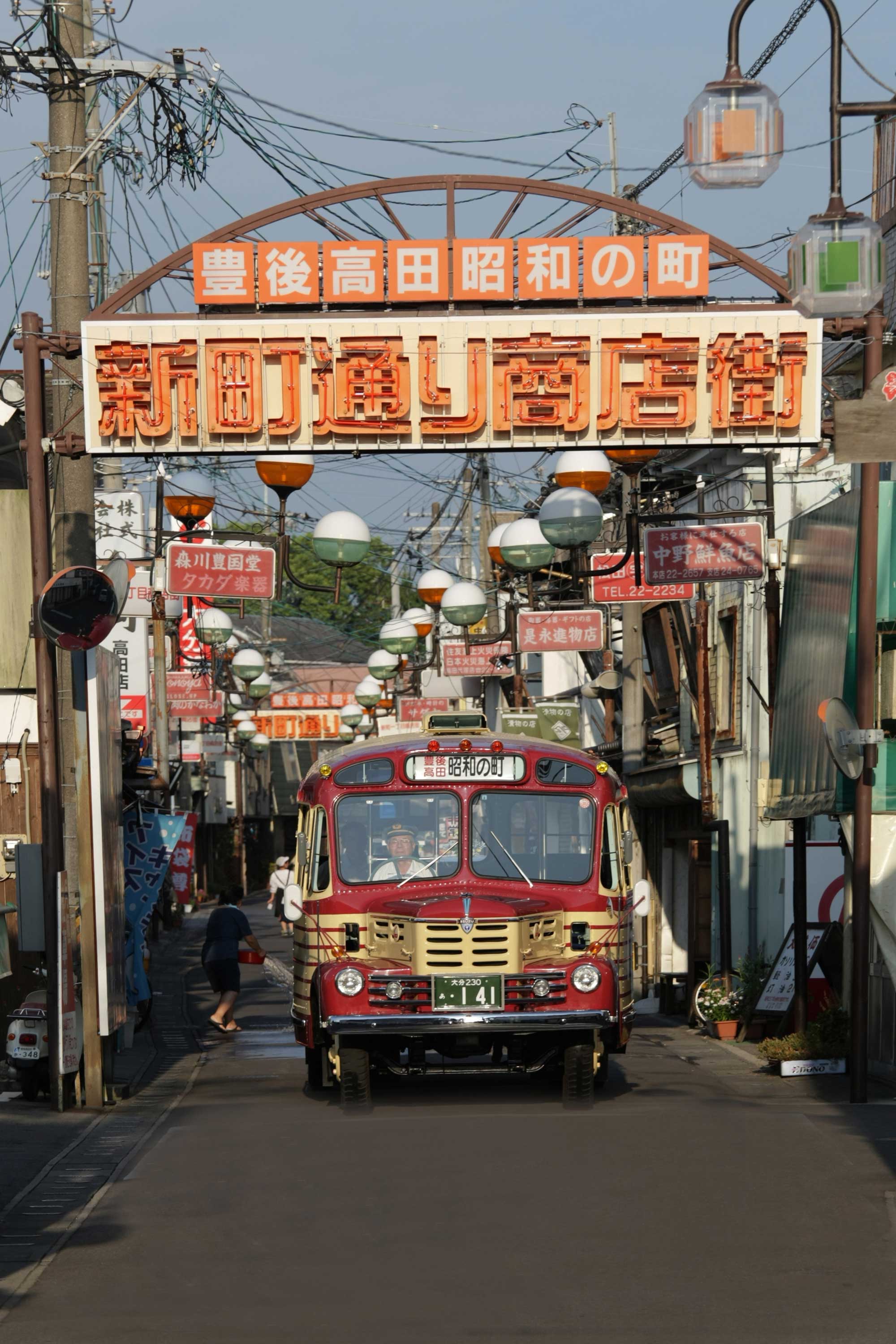 豊後高田 昭和の町昭和30年代をテーマにした懐かしさが溢れる商店街。レトロな看板や建物が並ぶ町並みを散策すれば、まるで昭和時代にタイムスリップしたような気分になります。ボンネットバスは週末を中心に運行しています。 写真は、@sho53_noon さん タグ付け頂き。