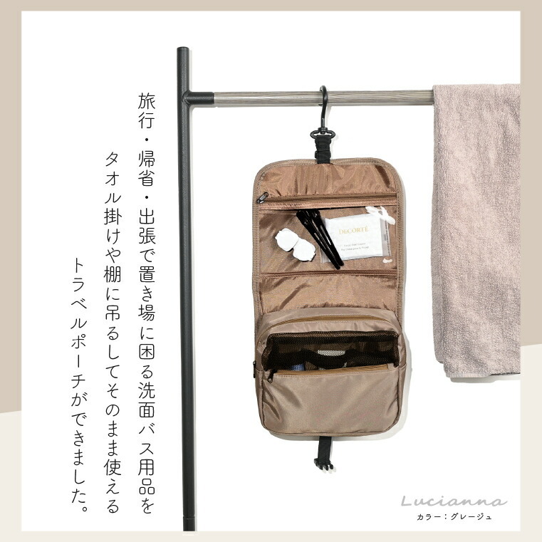吊り下げ可能な収納ポーチ トラベルポーチ 化粧ポーチ 女性 ユニセックス 小物入れ 旅行グッズ 便利グッズ ファスナーポケット 大容量 コスメオーガナイザー ハンガー お風呂 洗面 分類収納。