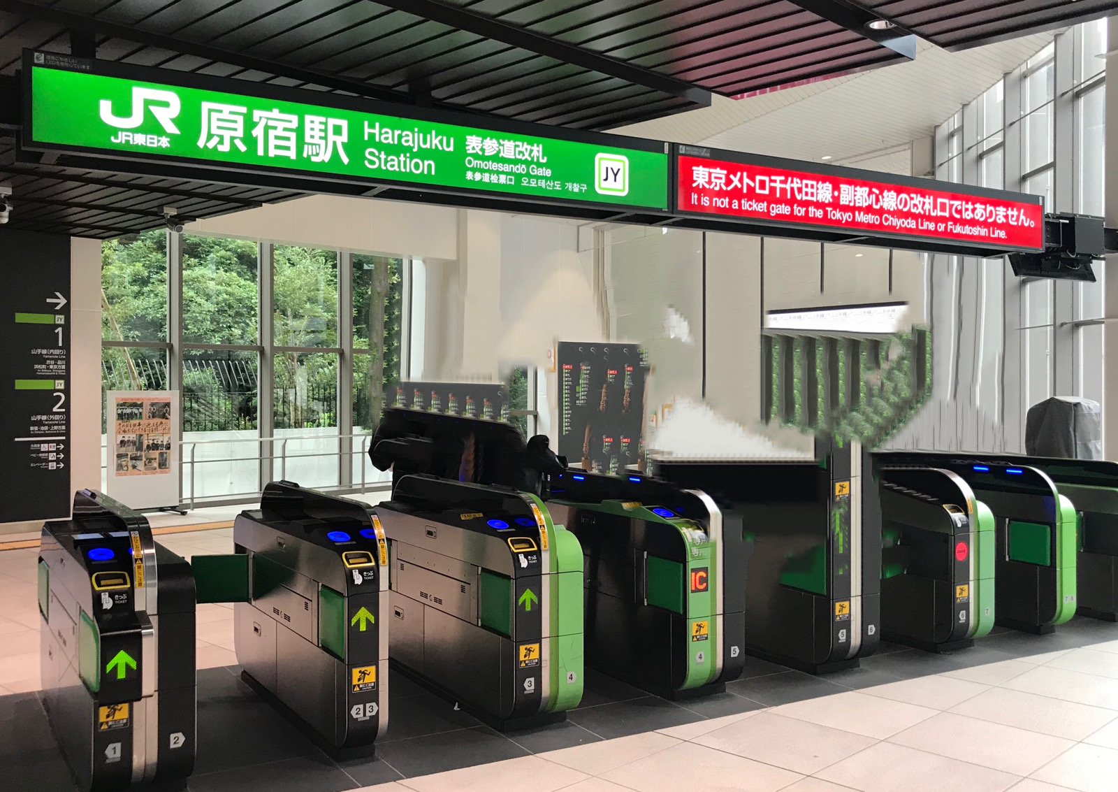 原宿駅の新駅舎にある表参道改札口の風景 - YouTube。