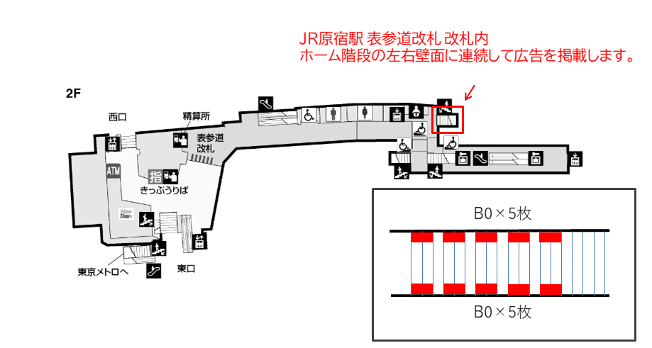 駅臨時広告・駅広告 JR 原宿駅 原宿改札内腰壁シートプラス 7日間駅看板.com 駅看板ドットコム 関東版駅広告・駅ポスター・駅デジタルサイネージ。