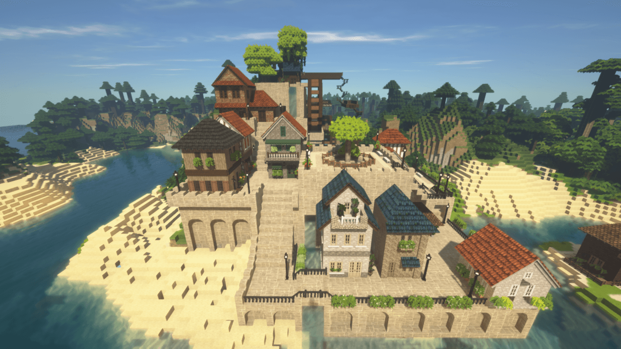 マイクラ 小さな島にあるかわいい町の建築がこちらマイクラ速報。