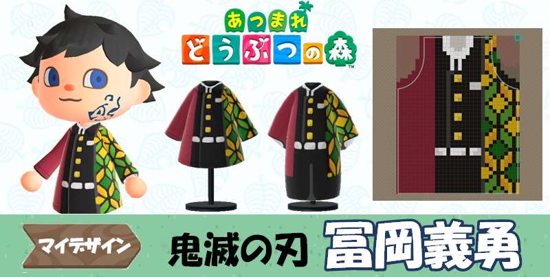 鬼滅の刃の衣装を あつ森 マイデザインで作ってみた。