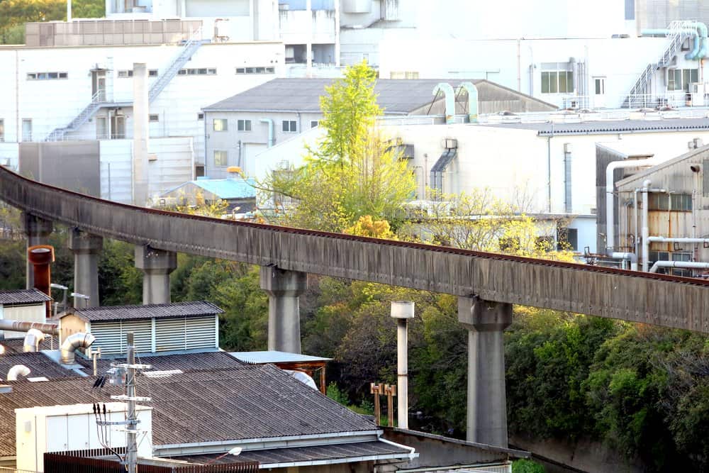 姫路モノレールの屋上橋脚はビルが後から巻き付いた?!TabiKen -旅とビルと建築と。