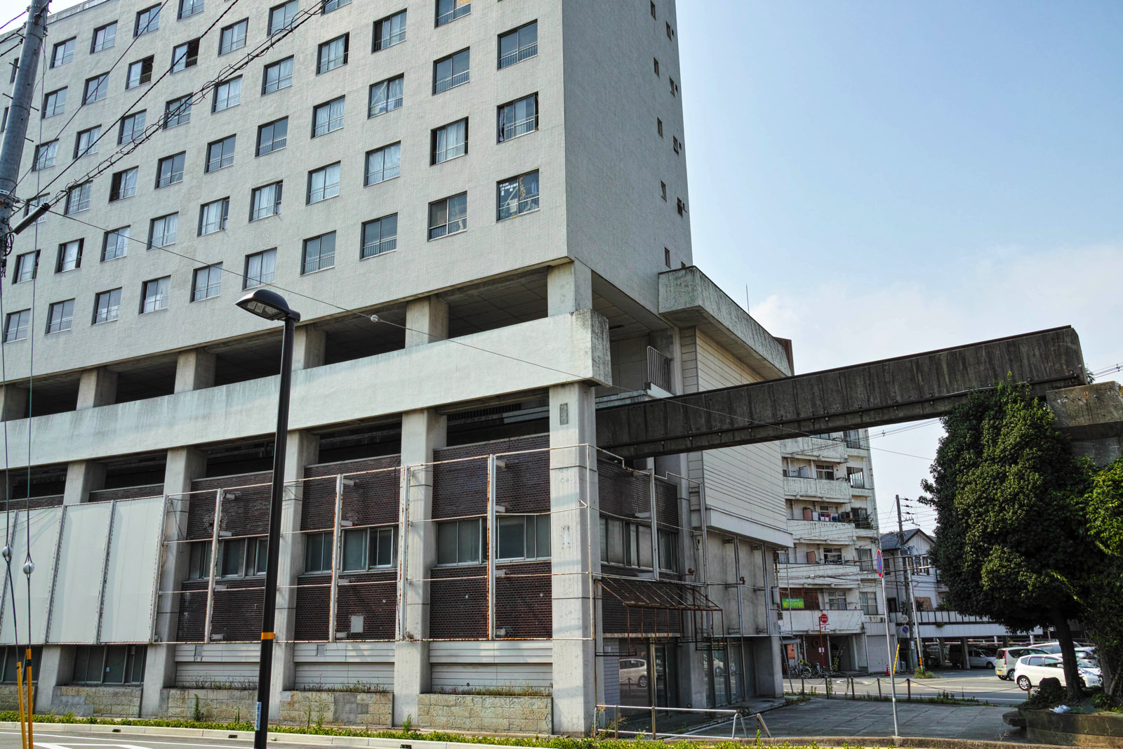 お鯛 on X: " 抜けぬなら開発止めよう大将軍モノレールがビルを貫く形の特異な形の高尾アパート 大将軍駅 が解体され再開発される事になったが杭 が抜けない事が発覚。JR姫路駅至近の好立地でありながら観光バス駐車場くらいにしか使えないという結果に。クソ物件。