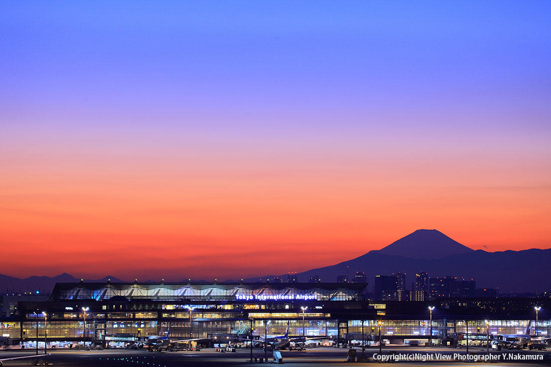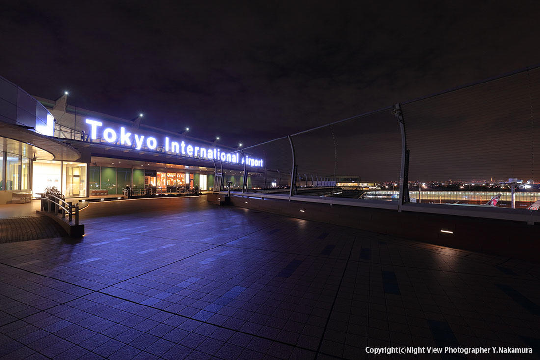 羽田空港 国際線ターミナル 展望デッキの夜景 東京都大田区。