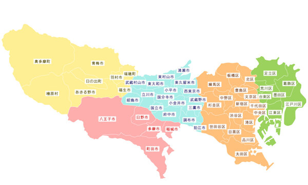 東京都と市区町村地図のイラスト素材104196167- PIXTA。