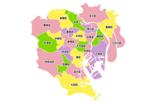 東京23区の地図のベクターイラスト素材カラーのイラスト素材FYI05022052ストックフォトの QleanMarket キュリンマーケット。