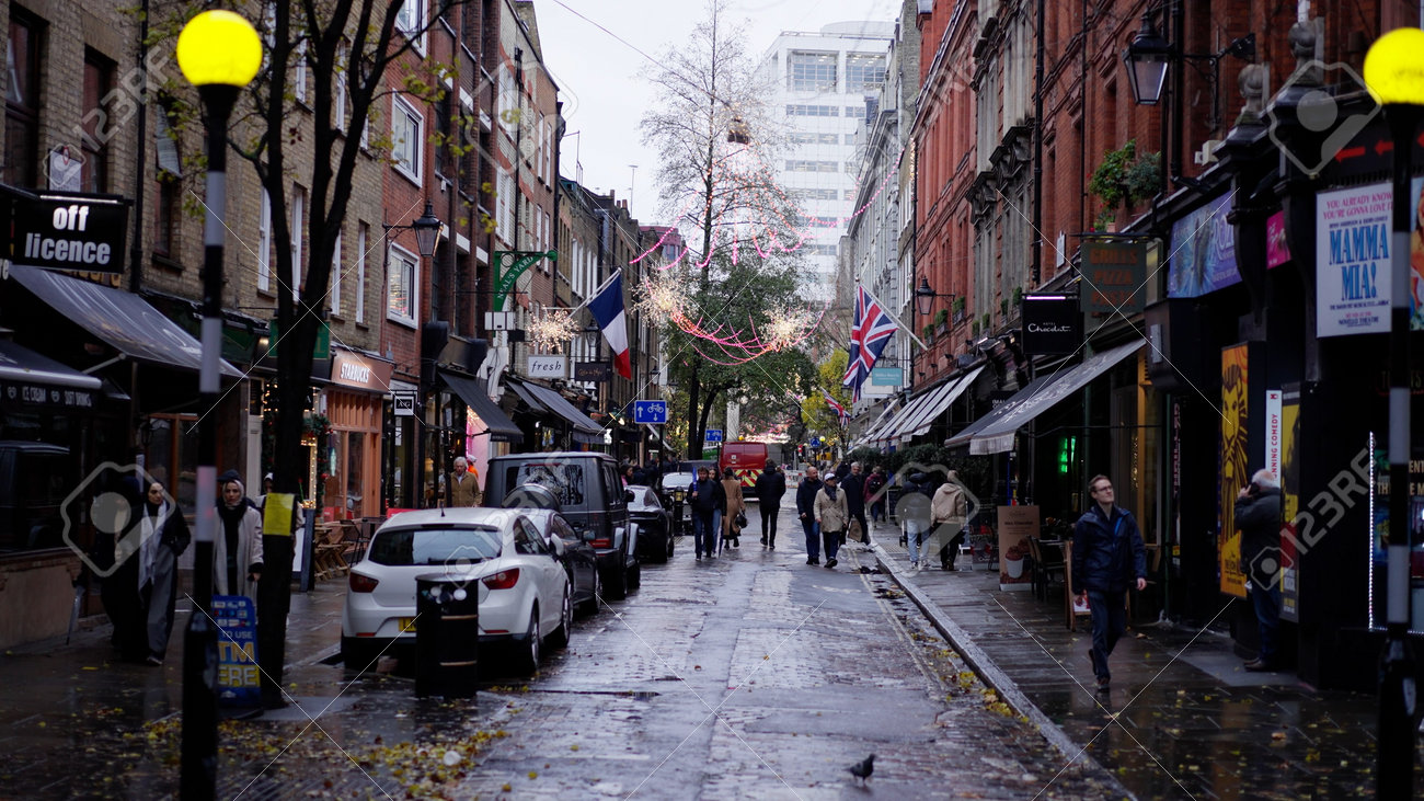 クリスマスの時期にロンドンウエストエンドの小さな車線-ロンドン、英国- 2022年12月20日の写真素材・画像素材 Image 196316152。
