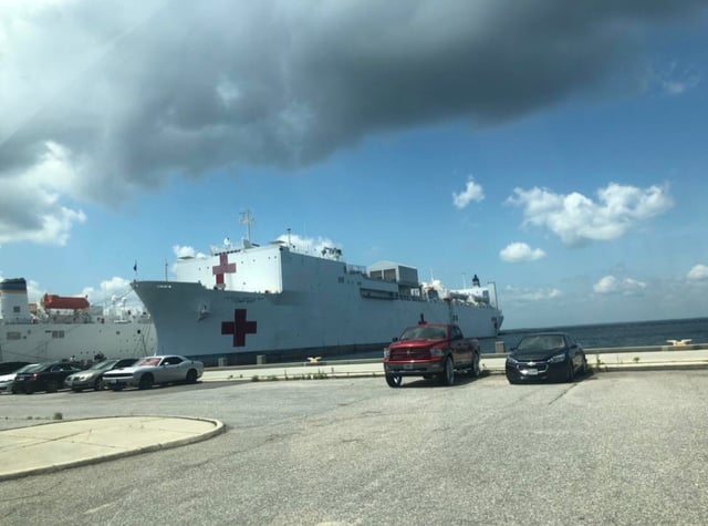 USNS ComfortT-AH-20Mercy級病院船がノーフォーク海軍基地に停泊。 1,125x836: r WarshipPorn。