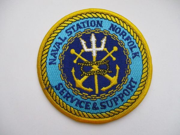 アメリカ海軍NAVAL STATION NORFOLKノーフォーク海軍基地SERVICE&SUPPORTパッチ刺繍ワッペン NAVY米海軍USN。
