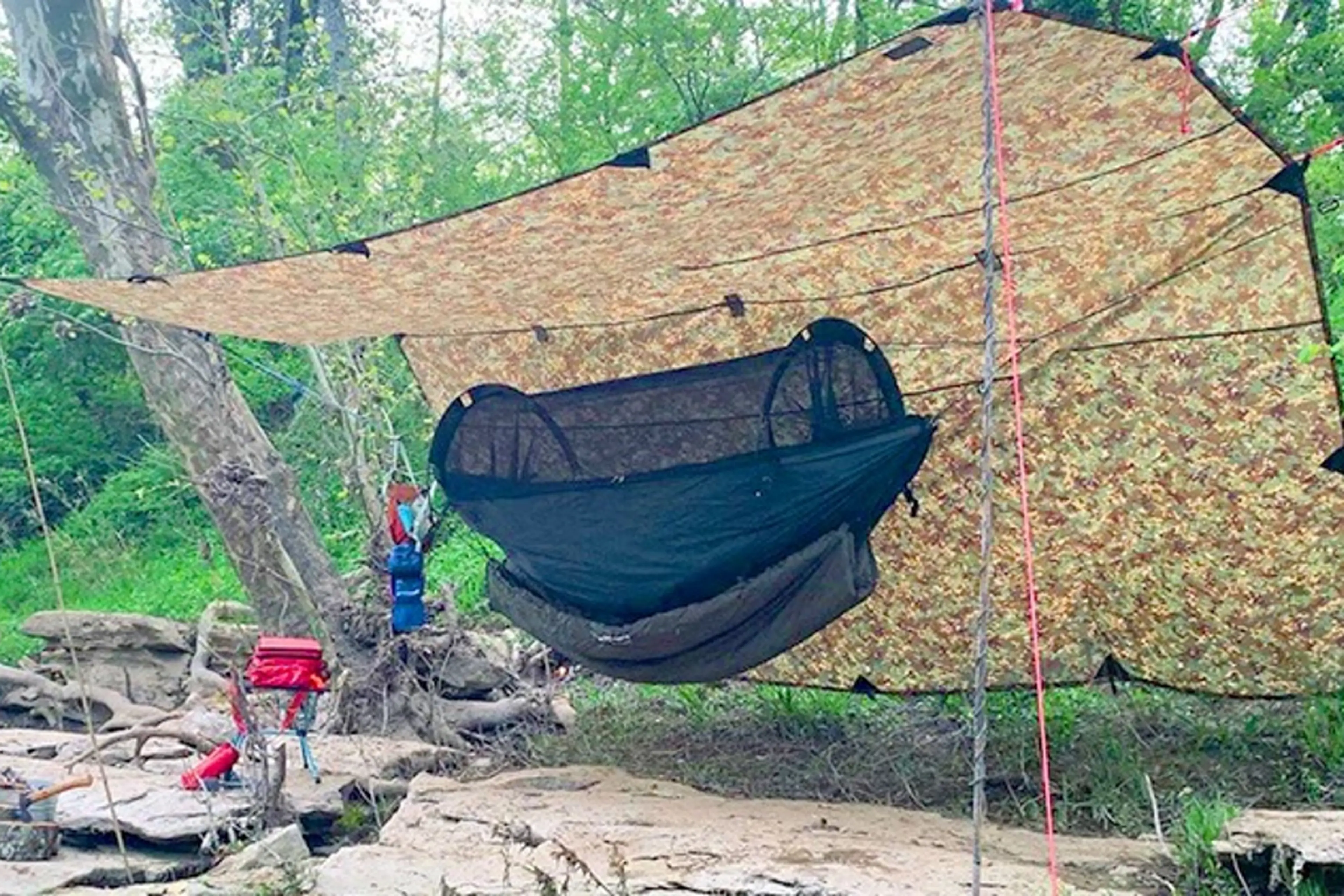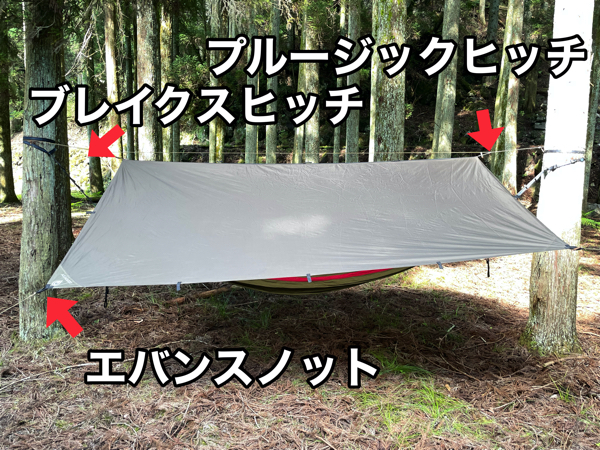 ハンモック泊のタープの張り方!簡単にできる方法と知らないとヤバい注意点ゆうすけキャンプ。