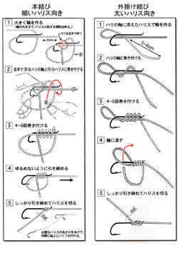 投げ釣り仕掛けの作り方 仕掛けの結び方本結び 外掛け結び ブラットノット リーダーノット。