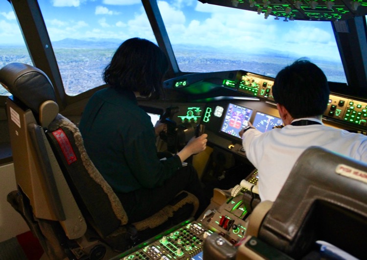 JAL767機長、A350シミュレーター体験 「コツつかめば操縦しやすい」。
