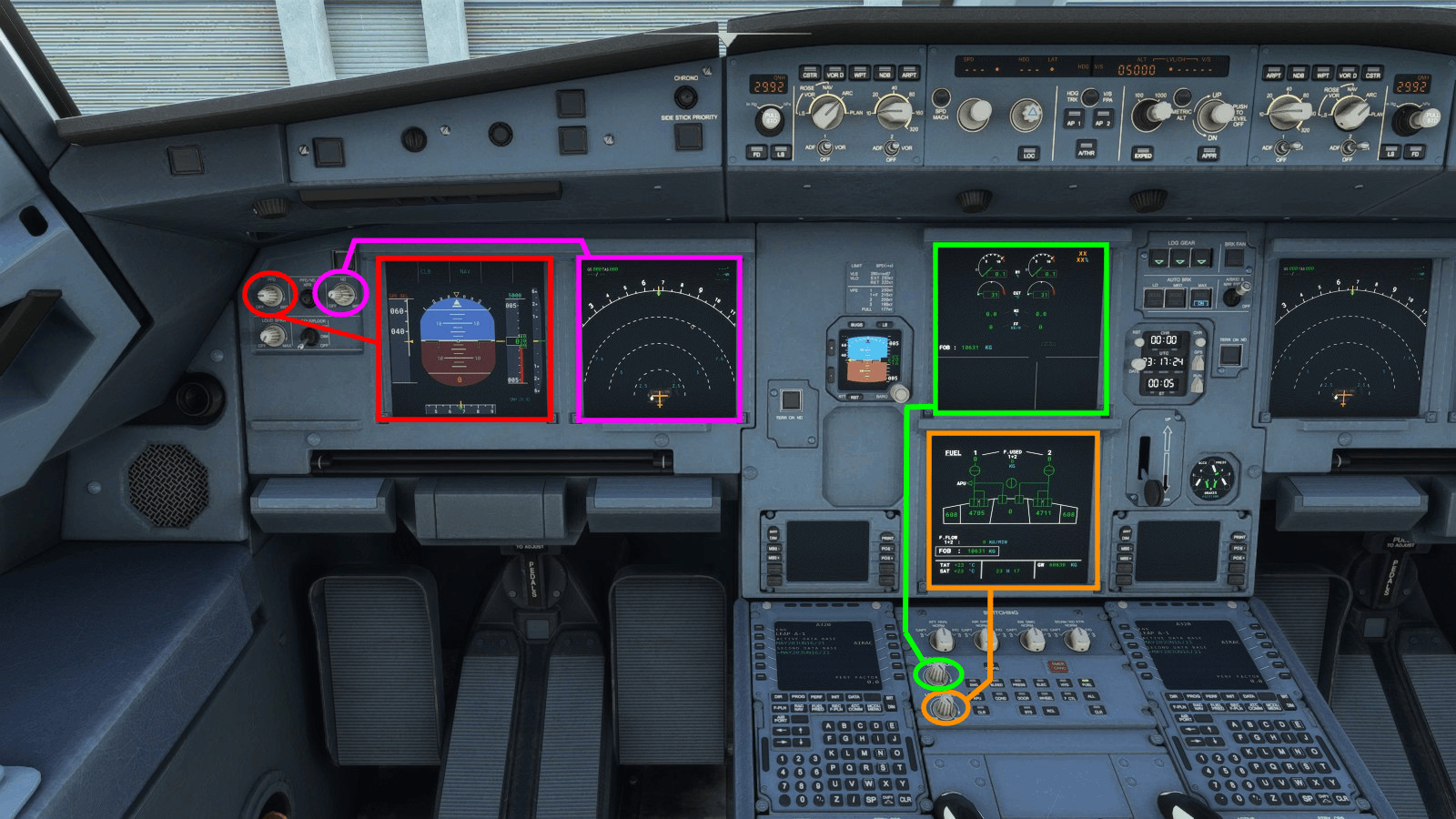 計器パネル、照明の明るさ調整方法 A320neoMicrosoft Flight Simulatorで世界一周。