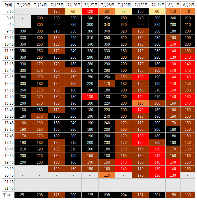 ⟢⋮ 🏰ディズニー今日の待ち時間 8 4 晴れ東京ディズニーシー8月から通常開園時間が8:45になり、傾向が大きく変わっています!アナ雪は大体開園30分後くらいにスタンバイパスが発券終了しています。アナ雪:9。