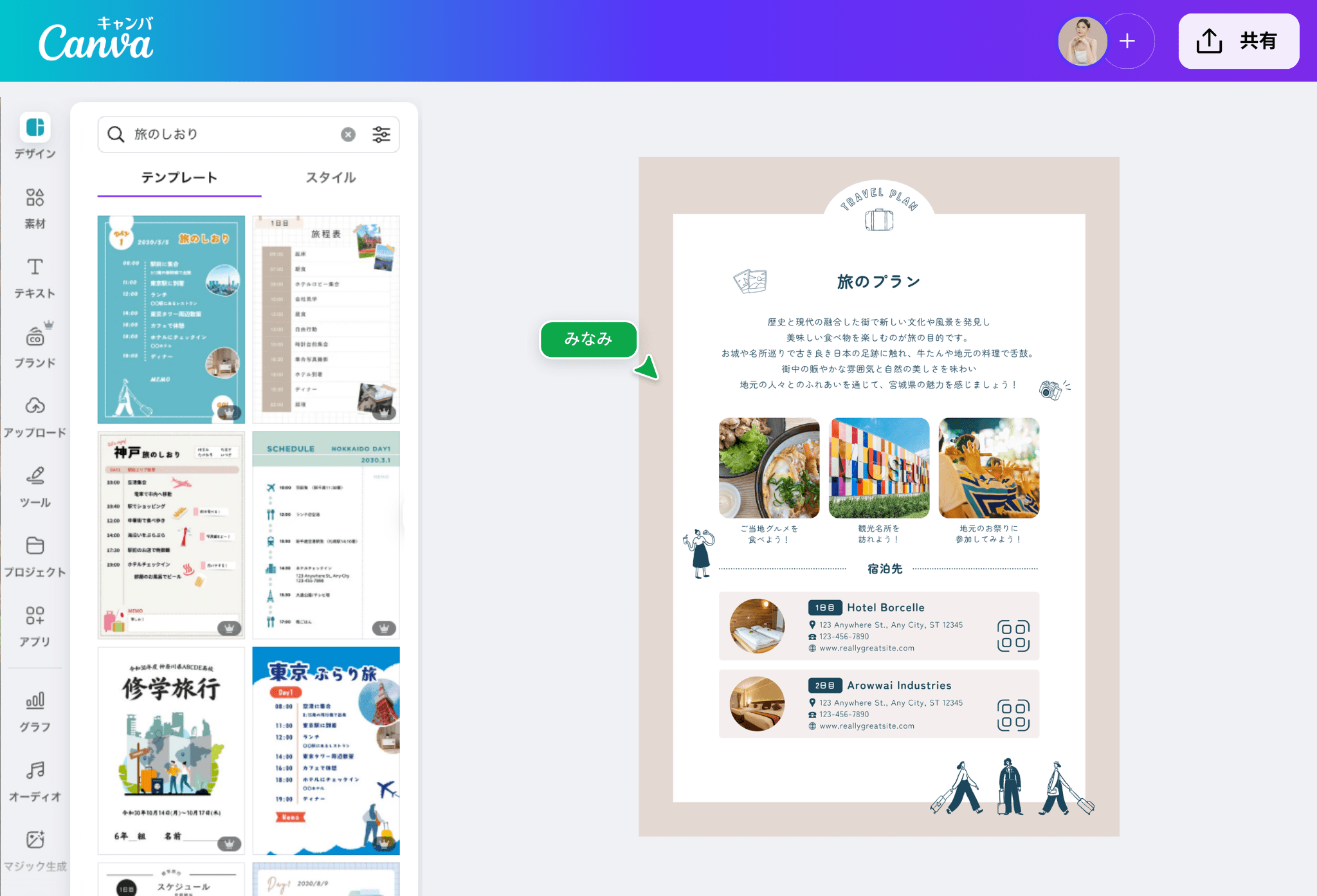 旅のしおりを無料テンプレートで作成!簡単におしゃれなデザインを手作りできるAI搭載スマホアプリCanva キャンバ。