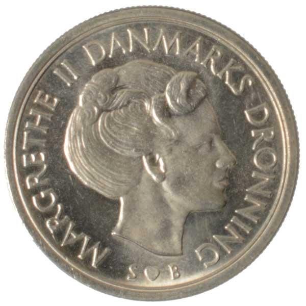デンマーク5クローネ硬貨マルグレーテ2世Km:8631973 - 1988。