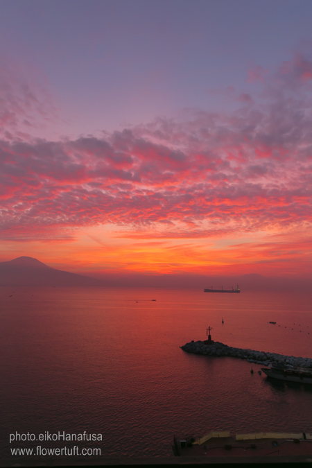 イタリア*ナポリ湾に昇る朝日 : 幸せのテーブル*maison flowertuft-flowers&tablesXphoto。
