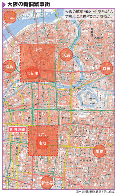 大阪の繁華街「キタ」「ミナミ」とは?:万博で「ニシ」も話題にnippon.com。