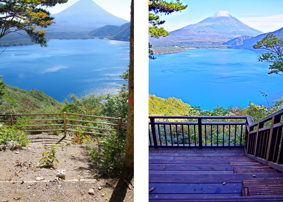 アート&トラベル 岡田紅陽「湖畔の春」撮影地本栖湖 中ノ倉峠展望デッキ。