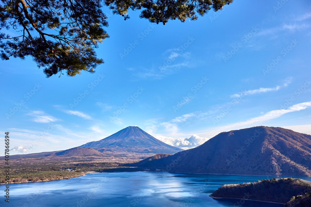 山梨県 本栖湖の中ノ倉峠展望地から望む富士山の写真素材46706558- PIXTA。