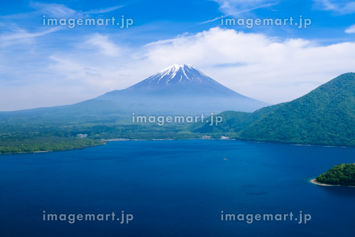 山梨県 中ノ倉峠展望地からの本栖湖と富士山の写真素材207719286- イメージマート。