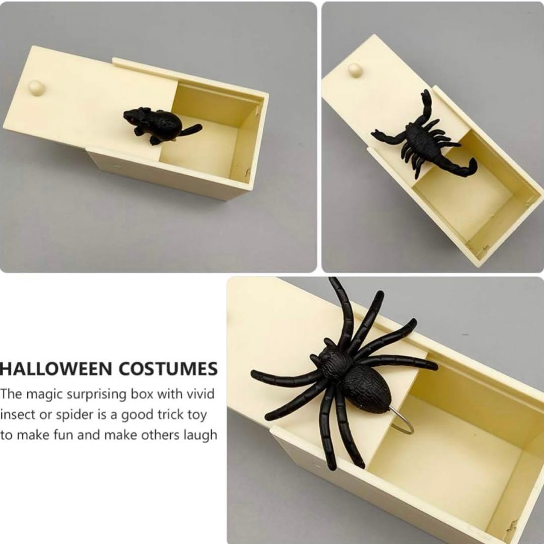Amazon恐怖ボックス クモ いたずら箱 ドッキリ 蜘蛛 飛び出す びっくり箱 手作りの木製ビックリ箱 悪ふざけ 木箱 動物 恐怖ジョークおもちゃ 誕生日 ハロウィーンおもちゃ クリスマス ギフト 冗談 玩具 偽物 パーティー ドッキリ玩具 面白い プレゼントジョーク。