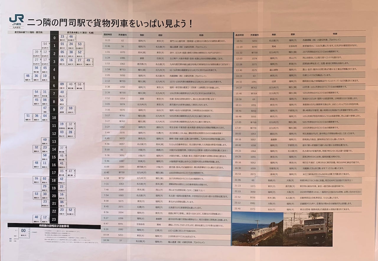 貨物列車に親しんで〜JR貨物が作った門司駅通過時刻表れきてつ。