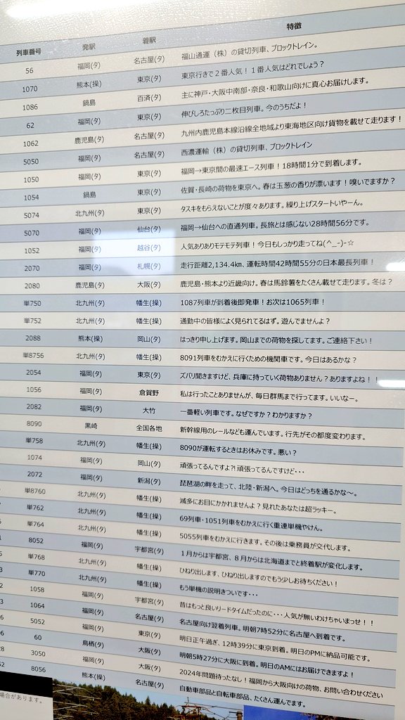 4-タon X: "RT @fus0car0l: 最近話題の門司駅一言コメント付貨物時刻表 https:t.co sjpGAMf0Zg"X。