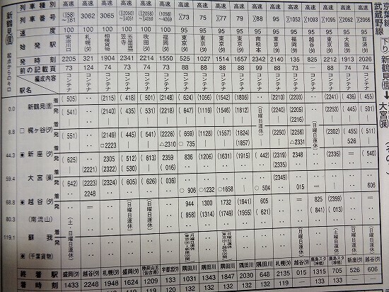 大宮操車場の貨物列車時刻表 2022年3月改正版。