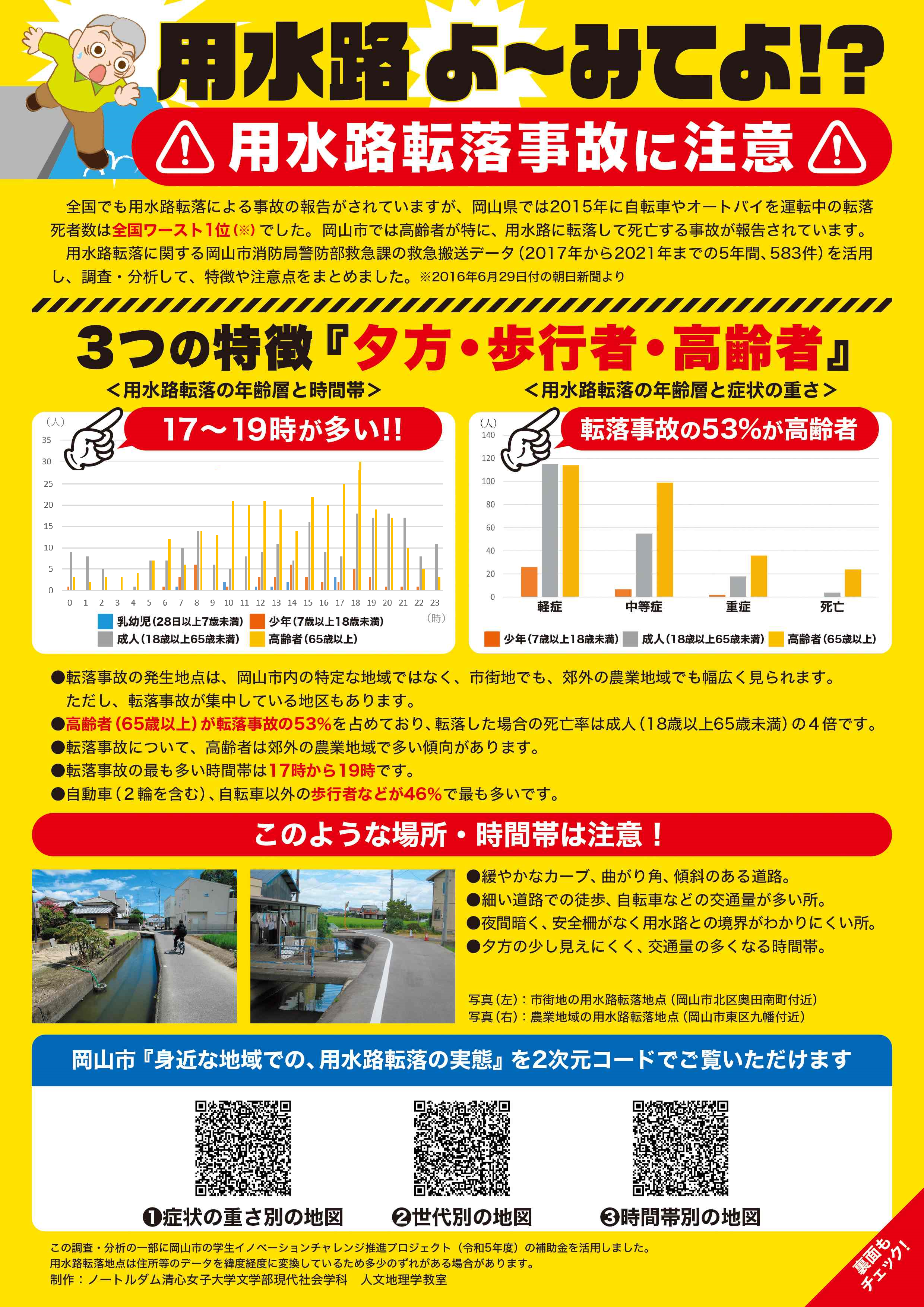 用水路転落地点の地図化は岡山市で初の取り組み 人文地理学教室で用水路転落防止リーフレットを作成し地域に配付現代社会学科ノートルダム清心女子大学。