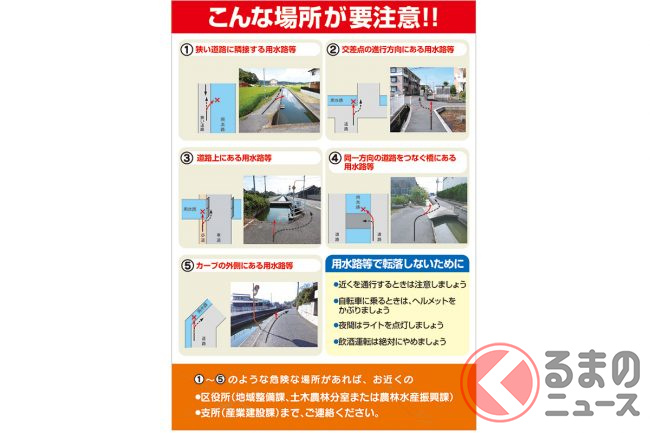 3年で転落死79人の岡山「人食い用水路」 事故多発理由や対策例を岡山市に直撃!くるまのニュース。