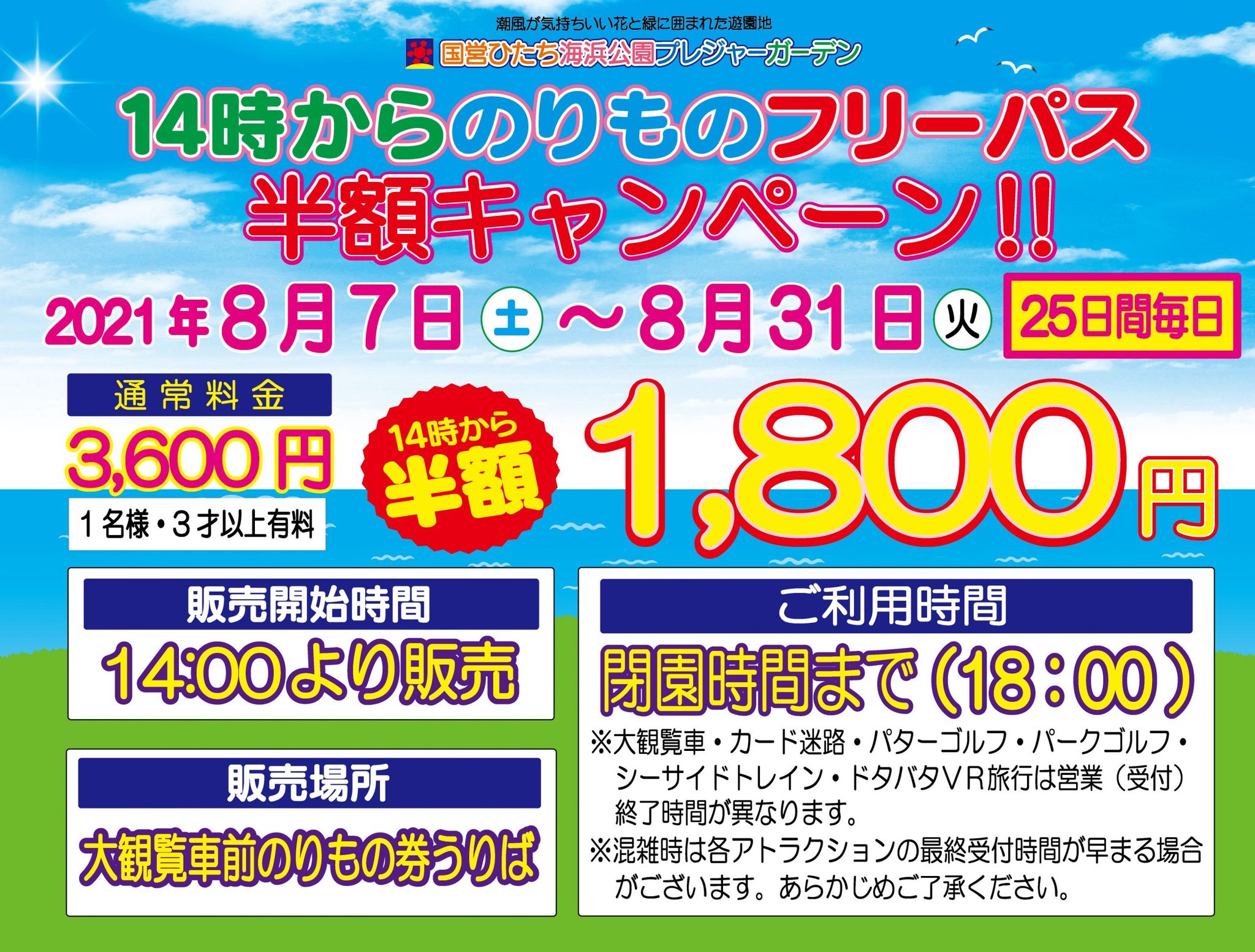 国営ひたち海浜公園 プレジャーガーデン遊園地 フリーパス割引券 クーポン 夏休み - メルカリ。