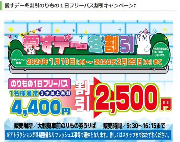 15%割引 国営ひたち海浜公園プレジャーガーデン のりもの1日フリーパスアソビュ。