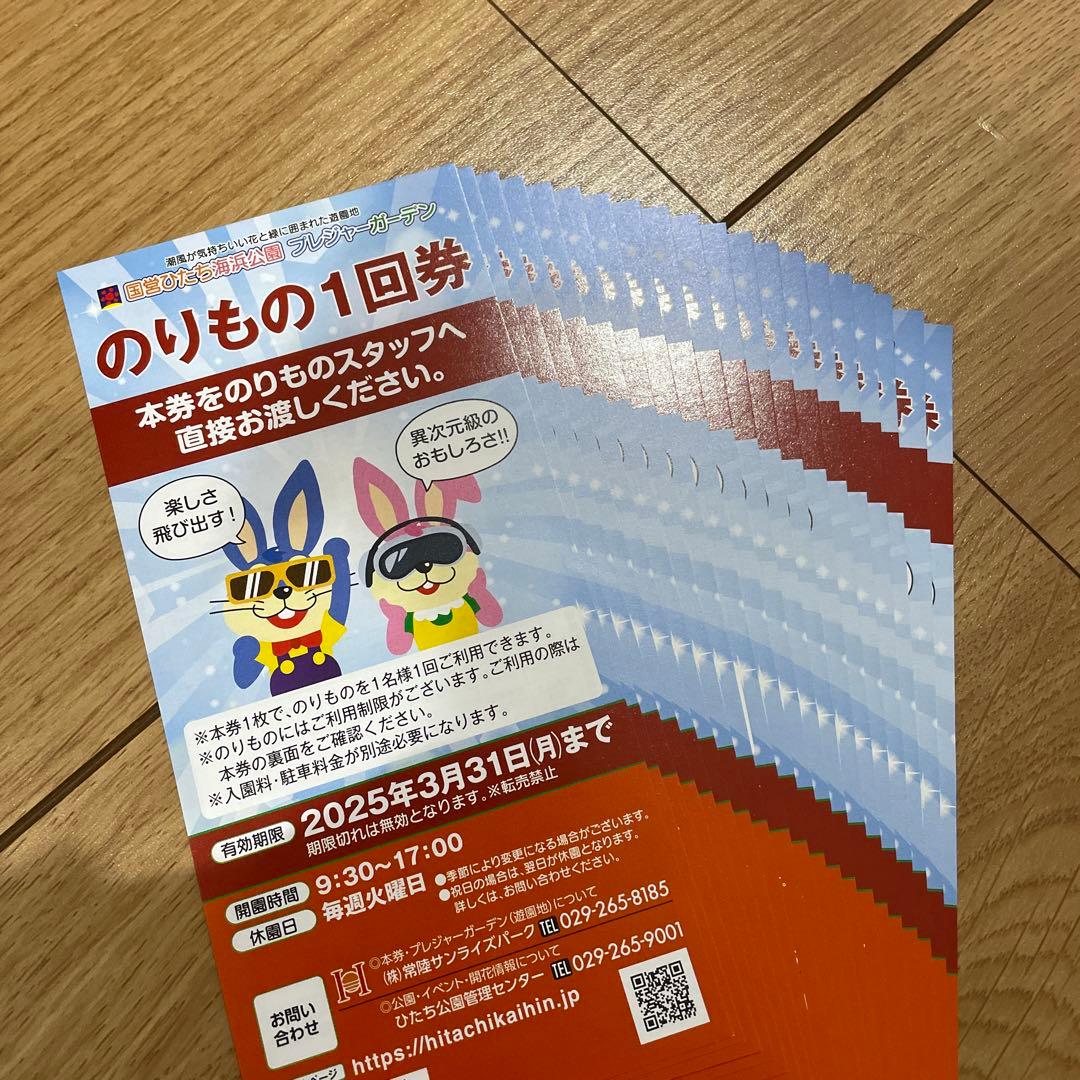 ひたち海浜公園乗り物 1回券10枚 2024年 国営ひたち海浜公園プレジャ。