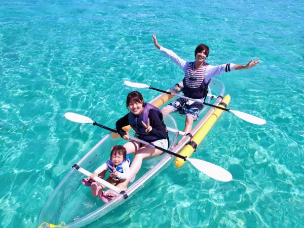 座間味村・阿嘉島開催・約90分 カヤックに乗って水中観察☆クリアカヤックで行くサンゴ礁ピクニック☆アクティビティジャパン。