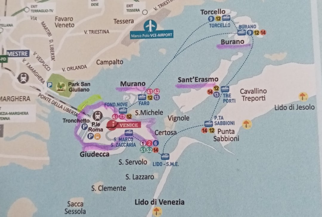 ベネチアの水上バス ヴァポレット のルート地図ダウンロードアーモイタリア。