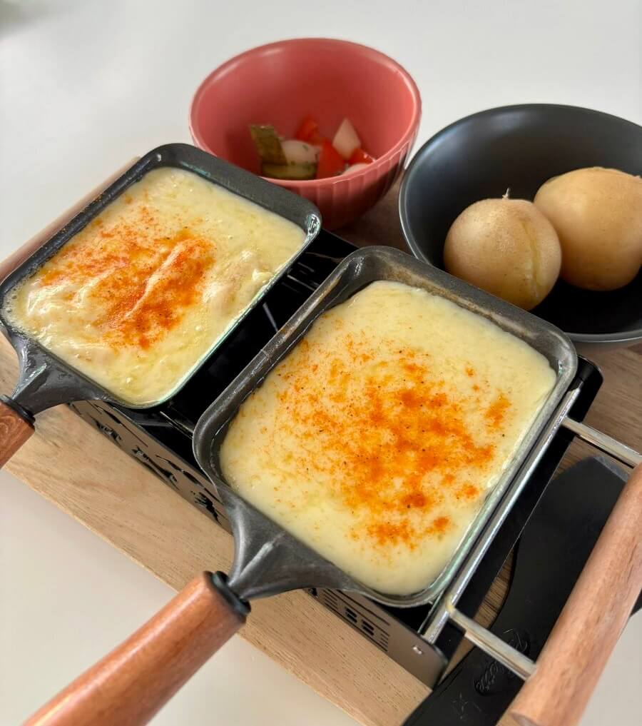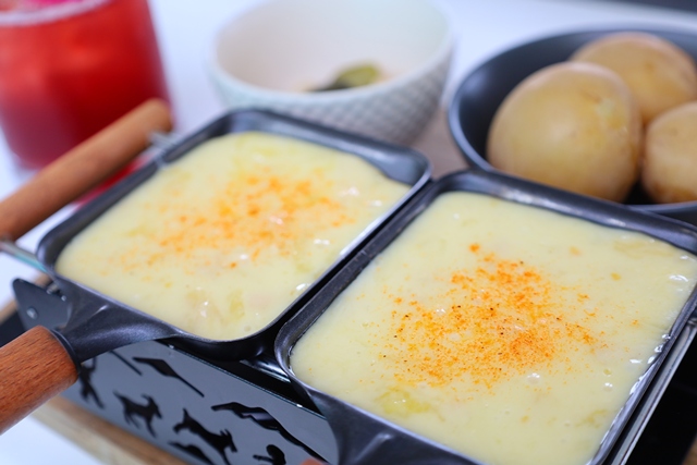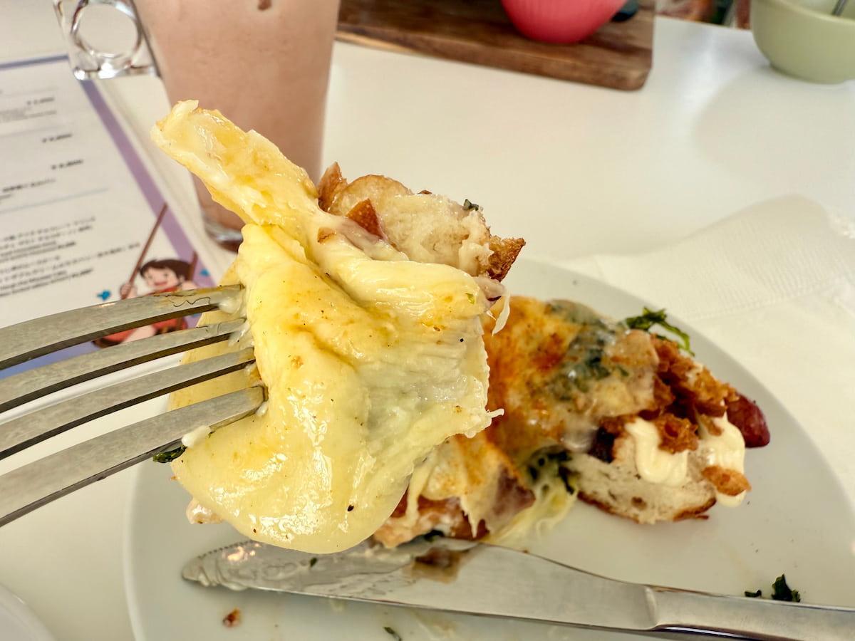 ハイジカフェ スイス館の上にあるハイジカフェも並ぶのが厳しくなってきましたが、オンジがハイジに食べさせてくれるチーズを暖炉で温めてトローリとなったチーズをパンの上に乗せるのが食べれるのか?と思って入ったが、からこのチーズラクレットがそれに近かったがパン。