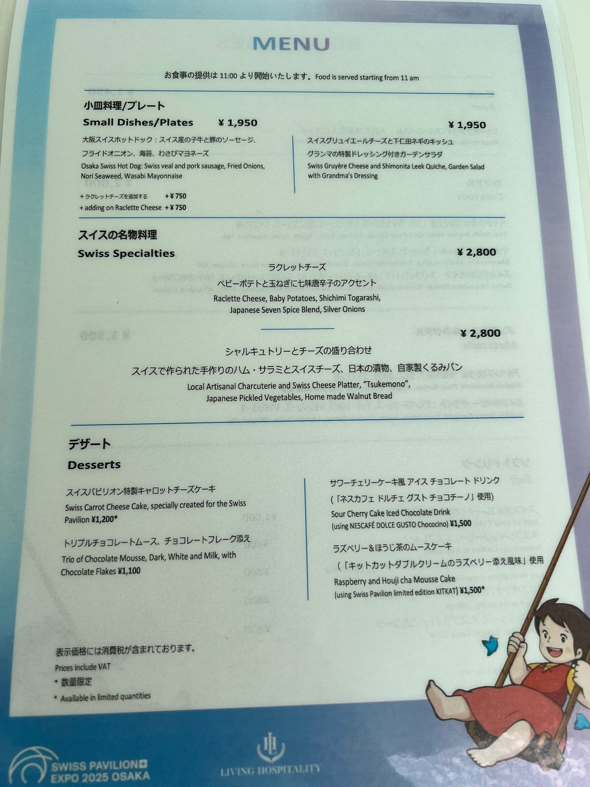 eu on X: "スイス館のハイジカフェのメニュー載せとく。 自分用メモEXPO2025万博万博グルメハイジカフェhttps:t.co 2e2iozL1Os"X。